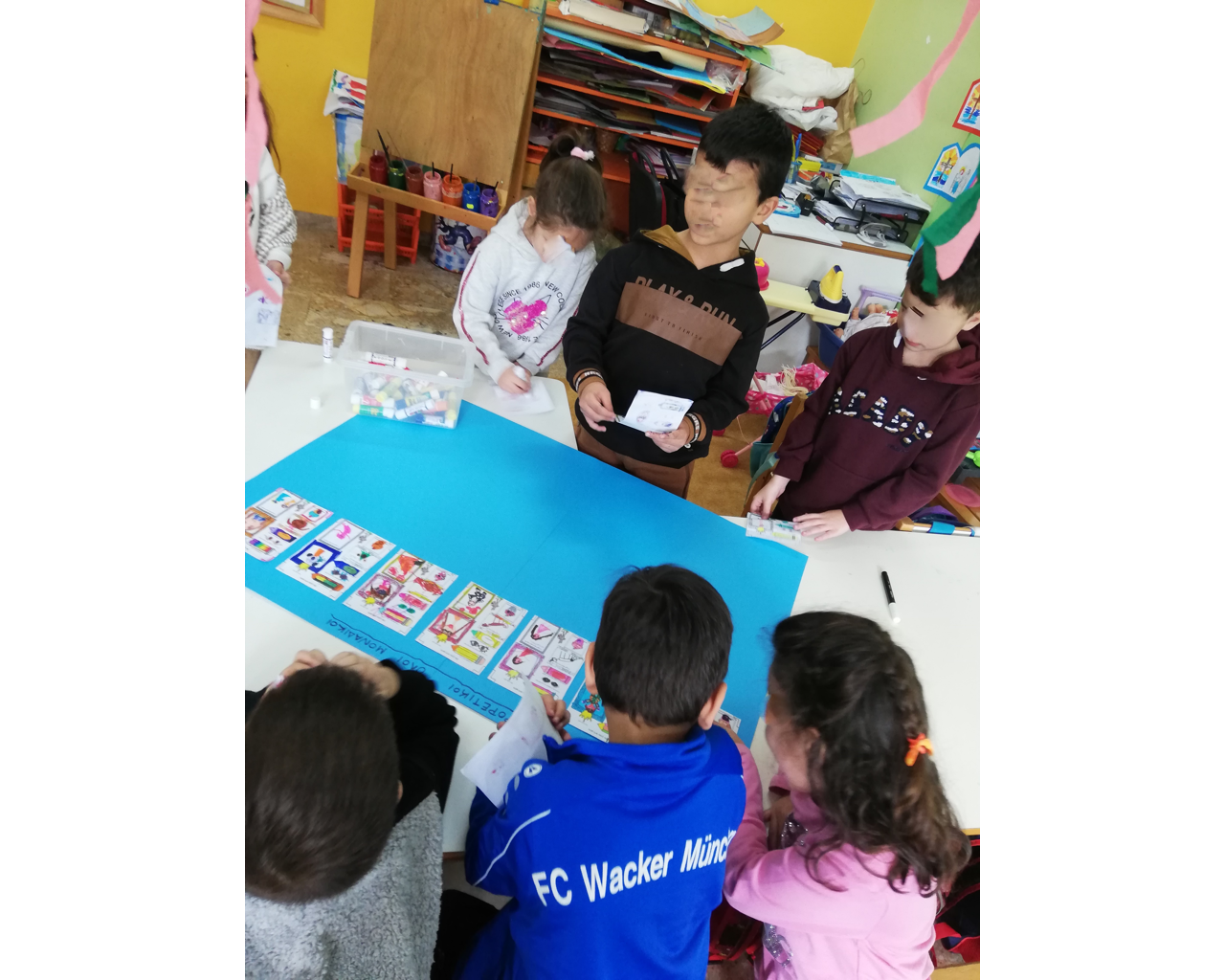Επιπροσθέτως, τα παιδιά συνεργάσθηκαν και έφτιαξαν από κοινού αφίσα πάνω στην οποία υπήρχαν τα φύλλα εργασίας που έφτιαξαν κατά την διάρκεια της παρέμβασης. Μέσω της αφίσας αυτής διαφαίνεται η μοναδικότητα του κάθε μαθητή και πως όλοι μαζί αποτελούν μια ομάδα ο ένας πλάι στον άλλον.