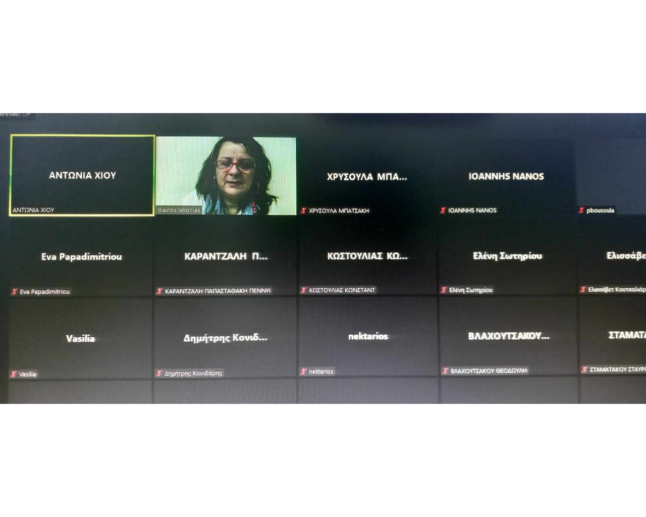 Στα πλαίσια της ενδοσχολικής επιμόρφωσης των εκπαιδευτικών, το Κέντρο Πρόληψης Ν. Λακωνίας "Δίαυλος", πραγματοποίησε την Τετάρτη 21 Φεβρουαρίου μια διαδικτυακή ομιλία ενημέρωσης ευαισθητοποίησης στη θεματική της αποτελεσματικής επικοινωνίας σχολείου οικογένειας με ομιλήτρια την κ. Ασπασία Γκουντούνα - Κοινωνική Λειτουργό.