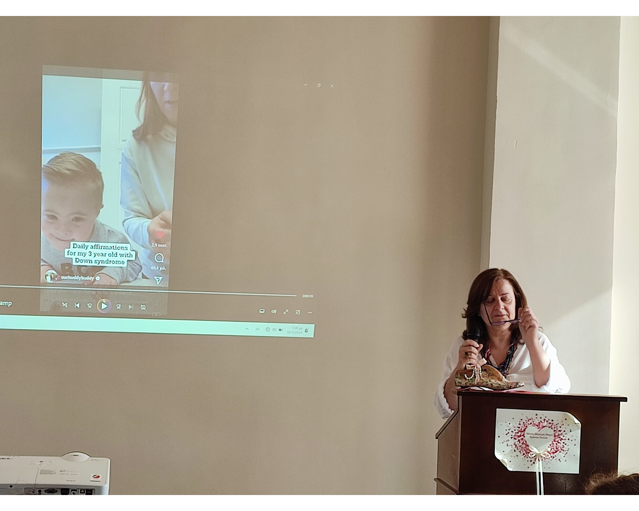 Η πρόεδρος του συλλόγου κ. Παναγιώτα Αβδούλου, παρουσίασε την ομιλήτρια κ. Ασπασία Γκουντούνα, η οποία είναι Κοινωνική Λειτουργός και επιστημονικό στέλεχος του Κέντρου Πρόληψης και συμβουλευτικής Λακωνίας, "Δίαυλος". Το θέμα που ανέπτυξε η ομιλήτρια ήταν: "Συναισθήματα και Δυσκολίες που βιώνουν οι μητέρες και οι οικογένειες ατόμων με αναπηρία".
