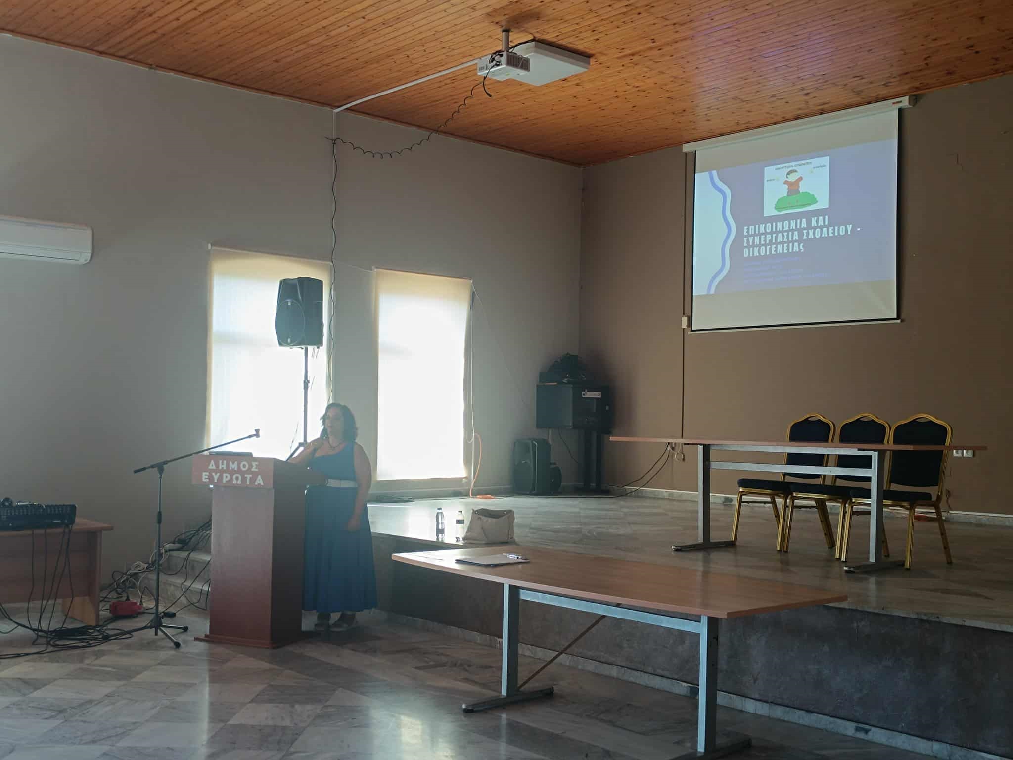 Ομιλήτριες από το Κέντρο Πρόληψης με θέμα «Επικοινωνία και συνεργασία Σχολείου – Οικογένειας», ήταν η κα Καργάκου Κατερίνα – Κοινωνική Λειτουργός MSc, PhD, Επιστημονικά Υπεύθυνη και η κα Παπαδοπούλου Ιωάννα – Ψυχολόγος MSc, Επιστημονικό Στέλεχος του Κέντρου Πρόληψης ΔΙΑΥΛΟΣ. Ευχαριστούμε για μία ακόμη φορά τη Διεύθυνση Πρωτοβάθμιας Εκπαίδευσης Λακωνίας για την εμπιστοσύνη και τη συνεργασία με τον φορέα μας.