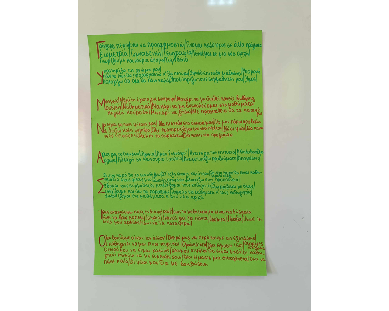 Η μετάβαση από το Δημοτικό στο Γυμνάσιο είναι ένα γεγονός σημαντικό στην ζωή των παιδιών. Οι δυσκολίες προσαρμογής μπορεί να διαρκέσουν και ως την αρχή της Β’ Γυμνασίου και πολύ συχνά μπορεί να έχουν ως αποτέλεσμα την ξαφνική πτώση της επίδοσης των παιδιών. Το γεγονός αυτό δεν αποδίδεται μόνο στην αύξηση των απαιτήσεων των γνωστικών αντικειμένων του Γυμνασίου, αλλά και σε διάφορους άλλους κοινωνικοσυναισθηματικούς παράγοντες, όπως συναισθηματική αστάθεια της εφηβείας, μεγαλύτερη επιρροή των συνομηλίκων κτλ.